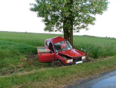 wpadł w poślizg i uderzył bokiem w przydrożne drzewo.Wczoraj