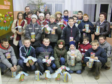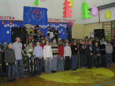 Kwestujący na rzecz WOŚP wraz z opiekunami