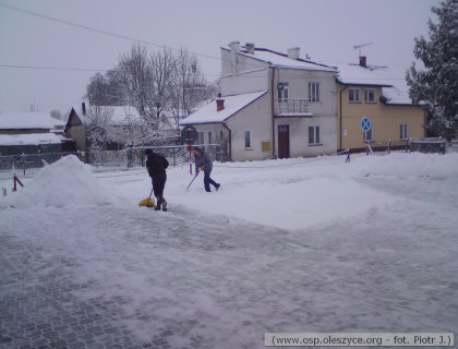 Zima w pełni - prace porządkowe przed Remizą